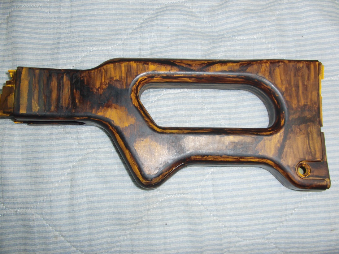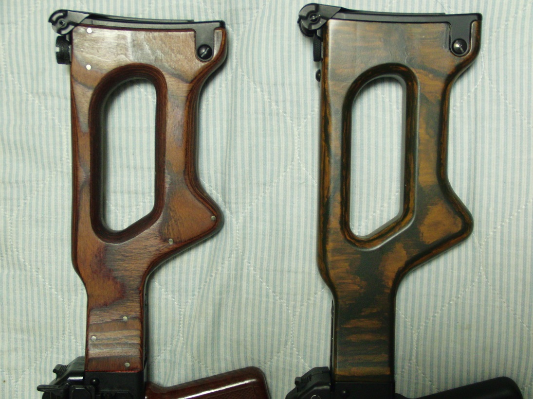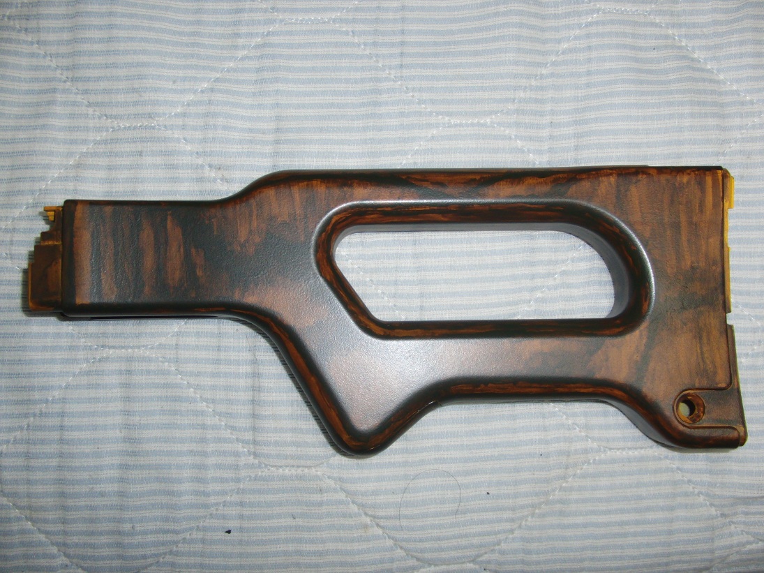 PKMの木製ストックは合板からの削りだしですので、それっぽい感じに塗ります。