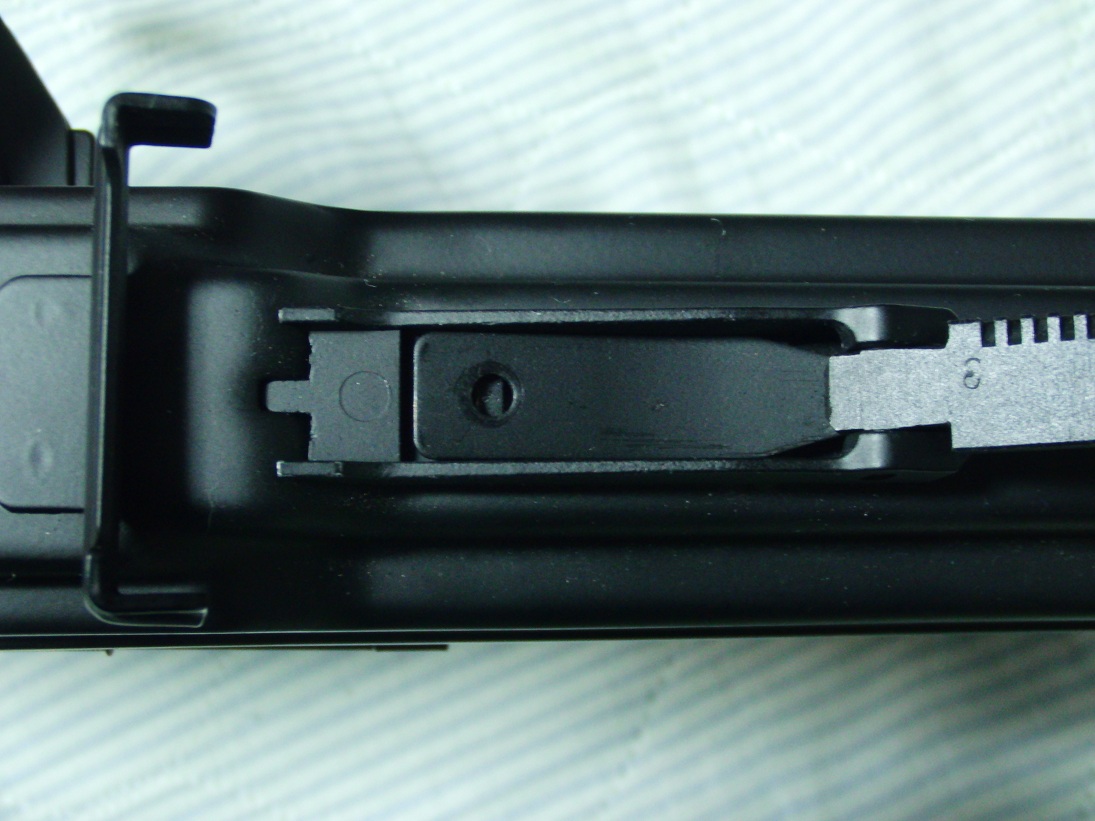 スライドさせると引っかかりが取れ、リアサイトにテンションがかからなくなります。