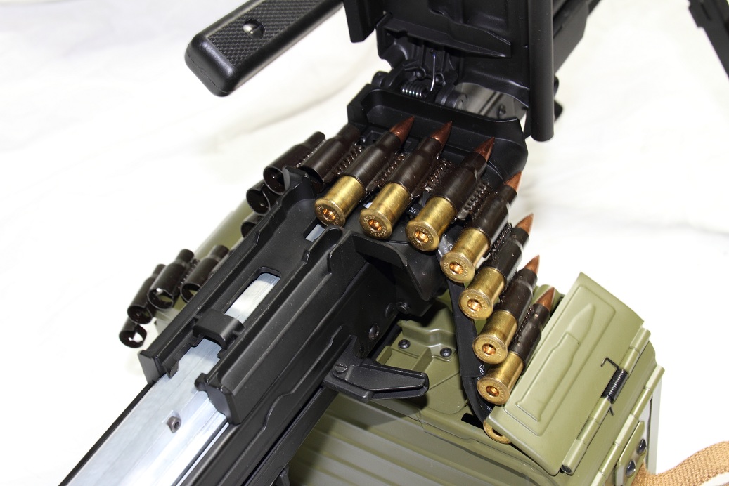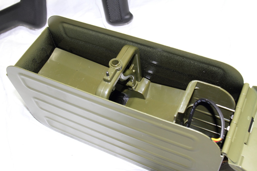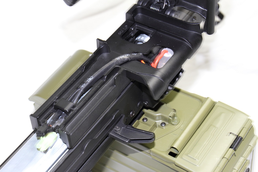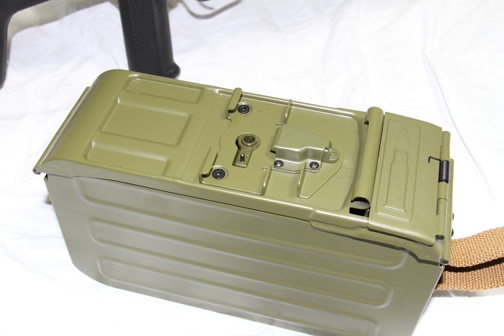給弾ルートを自作して、マガジンの中身を200連アモボックス等に移植すればなかなかかっこいいかもしれませんね。