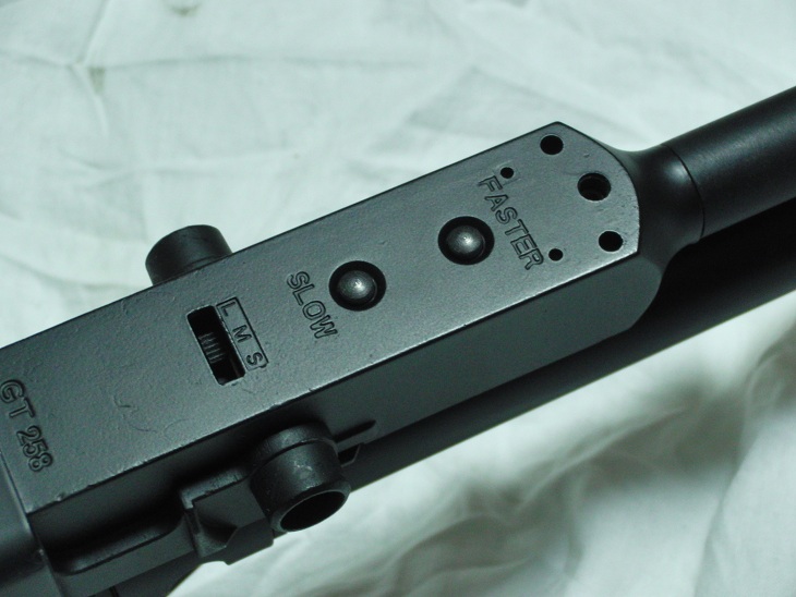 トリガーを引きながらボタンを操作することで速度を調整することができます。