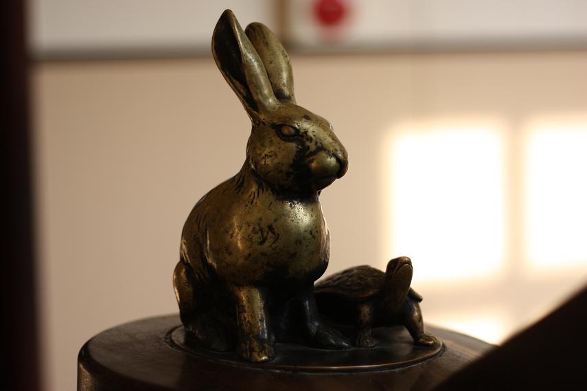 これは物語の兎と亀でして、踊り場のところの兎は寝てます。